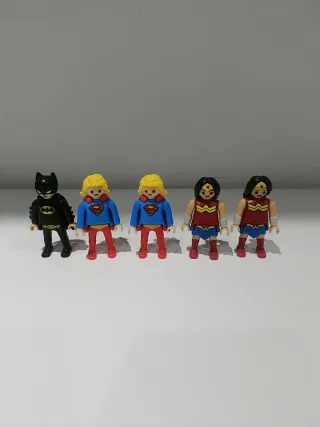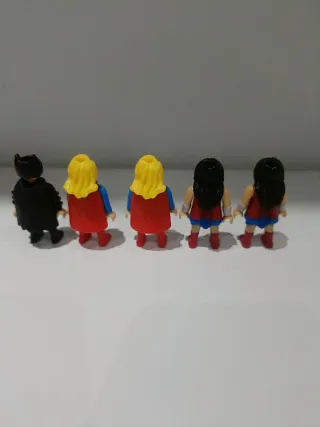 Lote de 5 figuras de Playmobil, provenientes de huevos Kinder. - Batman - Super woman(2) - Wonder Woman (2)