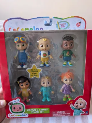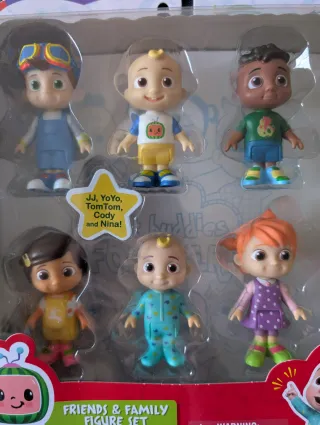 Set de 6 figuras articulables de Cocomelon, ideal para los fans de la serie. Nuevo a estrenar - Incluye a JJ, YoYo, TomTom, Cody y Nina. - Personajes detallados y coloridos. - Producto nuevo en su empaque original. -Caja un poco desgastada en el borde (ver última foto)