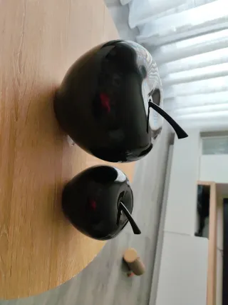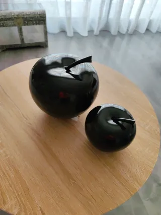 Set de dos figuras decorativas con forma de manzana. Marca Versa. 20cm y 13 cm de alto - Acabado brillante. - Color negro.