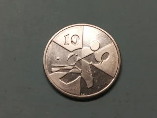 Moneda de Gibraltar con valor de 10 pence 2019. - Diseño con figura humana y elementos abstractos. - Borde con divisiones. - 2019.