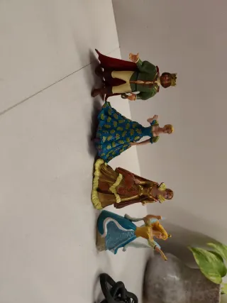 Set de 4 figuras originales de Schleich en excelente estado. Vendo lote completo de la familia real y seres mágicos de Schleich. Incluye personajes de las series World of Knights y Bayala, todos descatalogados y muy difíciles de encontrar en este estado. El lote incluye: El Rey (Ref. 70200): Figura con corona dorada, capa roja y espada al cinto. Princesa del Baile (Ref. 70201): La pareja original del rey, con su vestido floral azul y verde. Princesa Isabel (Ref. 70409): De la colección Bayala, con vestido dorado y abanico. Hada Eyela (Ref. 70400): La princesa de las hadas con alas translúcidas.
