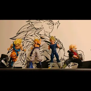 Conjunto de 4 figuras de personajes de Dragon Ball. - Figuras de Goku (SSJ1), Gogeta (SSJ1, Película Fusión), Vegeta (SSJ1) y Trunks (SSJ1). - Diseños detallados inspirados en el anime. - Sin caja, pero todos en buen estado. - Son todas regaladas, así que no se su procedencia.