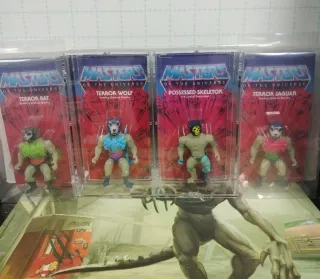 Set de 4 figuras de Masters of the Universe Super 7 de mi colección particular el set más raro y difícil de todo master of the universe. Figuras impecables . - Terror Bat caja protectora plástica - Terror Wolf Caja protectora acrilica - Possessed Skeletor Caja protectora Acrilica - Terror Jaguar caja protectora anti polvo y humo plástica
