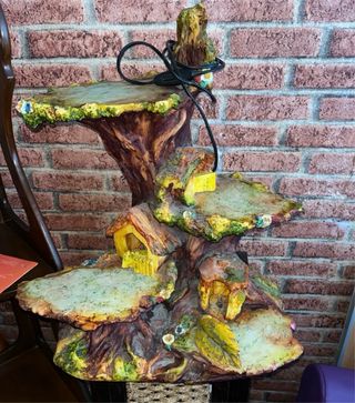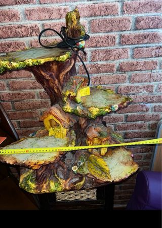 Conjunto de figuras decorativas con diseño de árbol y casitas. - Detalle de casitas y plataformas. - Colores vivos y acabados detallados. - Ideal para coleccionistas o decoración temática.