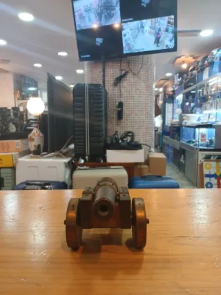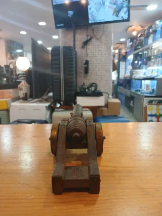 Figura decorativa de un cañón, ideal para coleccionistas. - Diseño detallado en madera y metal.