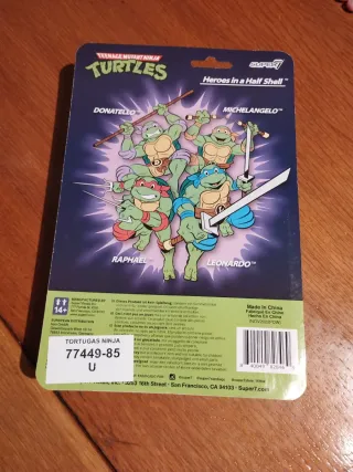 Figura de acción de Michelangelo de las Tortugas Ninja, parte de la línea ReAction. - Personaje: Michelangelo. - Colección: Teenage Mutant Ninja Turtles. - Marca: ReAction Figures.