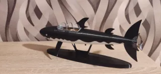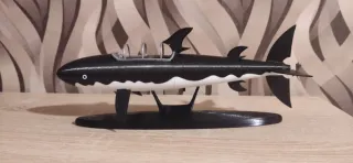 Figura del icónico submarino tiburón de Tintín. Un diseño detallado que evoca la aventura. - Diseño en forma de tiburón. - Colores negro y blanco. - Base de soporte incluida. - Mide 26 cm de largo