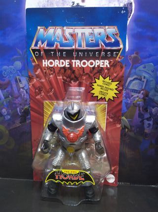 Figura de acción de The Evil Horde, parte de la colección Masters. - Diseño detallado en armadura plateada. - Emblema de murciélago naranja en el pecho. - Incluye cómic.