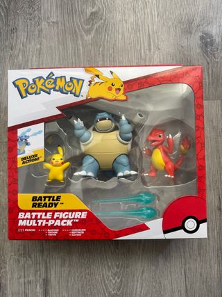 Set de figuras de Pokémon Battle Ready que incluye a Pikachu, Blastoise y Charmeleon. - Figuras de acción. - Incluye accesorios de batalla. - Personajes: Pikachu, Blastoise (Tortank), Charmeleon (Reptincel). - Presentación en caja Multi-Pack. Nuevo sin abrir