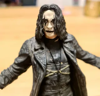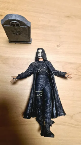 Figura de acción del personaje Eric Draven de la película The Crow. Incluye una lápida. - Figura detallada del personaje. - Lápida con inscripción Eric Draven.