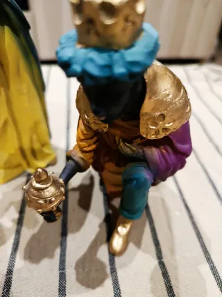 Conjunto de figuras de Reyes Magos,de 18 cm, el que está de pie,ideales para belenes o decoración navideña. - Figuras detalladas con coronas doradas. - Colores vivos y acabados cuidados.