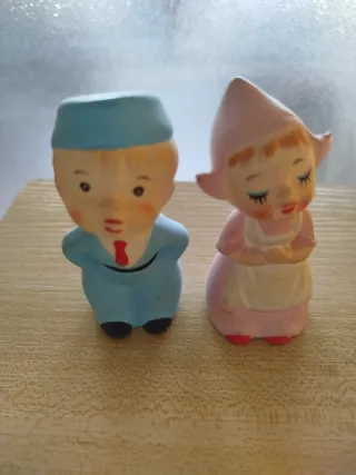 Pequeñas figuras decorativas de una pareja de estilo holandés. - Diseño vintage. - Figuras de cerámica. - Pareja de muñecos.