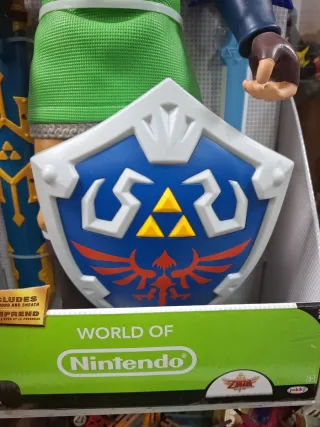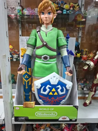 Figura grande de Link de la saga The Legend of Zelda, de la colección World of Nintendo. Mide 50 cm de alto. - Incluye espada y escudo. - Figura de Link con su traje verde característico.