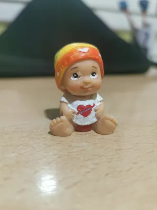 Figura coleccionable de un bebé, inspirada en el Roscón de Reyes. Ideal para coleccionistas. - Diseño tierno y detallado. - Colores vivos en el gorro. - Camiseta con diseño de corazón.