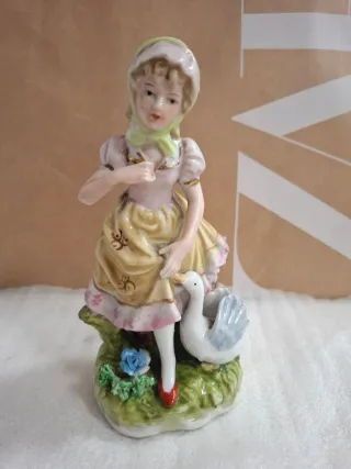 Figura decorativa de cerámica vintage que representa a una mujer con un sombrero, lazo rojo y vestido verde. Tendrá unos 40 años, ha sido bien cuidada y se encuentra en perfecto estado. - Mide 23 cm de alta, 10,50 cm en su parte más ancha y pesa 488 gramos. - Diseño artesanal. - Detalle de flor roja en cabeza. - Sombrero con cinta decorativa.