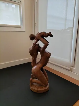 Preciosa figura de madera tallada a mano, representando una madre con su bebé. - Material: Madera. - Técnica: Tallado a mano. - Diseño: Madre y bebé.