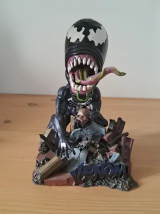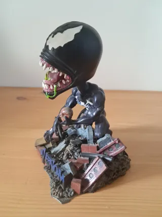 Figura de coleccionista edicion 2006 de Venom. - Marvel Heroes - Cards inc. Character - Base temática con escombros y el nombre 'Venom'. - Lengua larga y característica del personaje. - Boca abierta con dientes afilados y saliva. Spiderman, Funko, HeadKnocker, Neca, Cabezon, cabeza muelle.