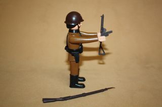 Figura de acción de un sargento del ejército inglés de Airgam Boys. Incluye tres armas. Se vende tal y como aparece en las imágenes, fijarse en ellas pues son parte de la descripción. Un zapato abierto. Para cualquier duda, preguntar antes de comprar, sin problemas.