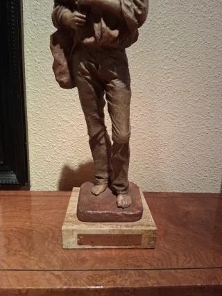 Figura decorativa que representa una escena de la vida rural. - Detallada artesanía. - Tonos marrones y beige.