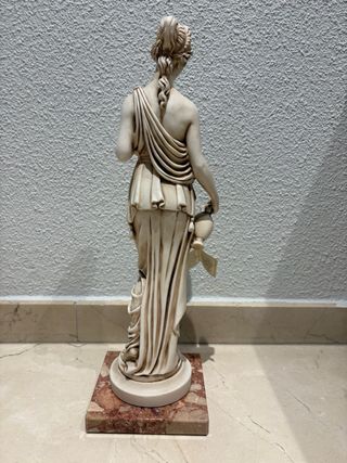 Estatua de la diosa Hebe, personificación de la juventud, en estilo clásico. - Figura de resina con acabado imitación mármol. (45cm altura) - Base de mármol veteado. - Inscripción 'ROMA' en la base.