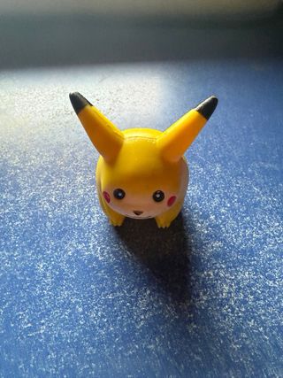 Figura coleccionable de Pikachu, con un diseño tierno y redondeado. - Color amarillo característico. - Detalles en rojo en las mejillas. - Orejas puntiagudas con puntas negras.