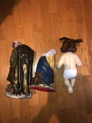 •no negociable •envio por wallapop inpost Conjunto de figuras para el Belén, representando a José, María y el Niño Jesús. -Jose y la virgen María han estado a la intemperie y han perdido calidad -el niño Jesús está en buen estado excepto una mano que tiene algún 2 dedos con golpe y 2 dedos del pie también miden unos 30 cms virgen antigua escayola cerámica porcelana