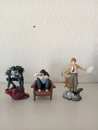 Colección de figuras de anime de Death Note. - Figura de Ryuk. - Figura de L sentado en un sillón. - Figura de Light Yagami.
