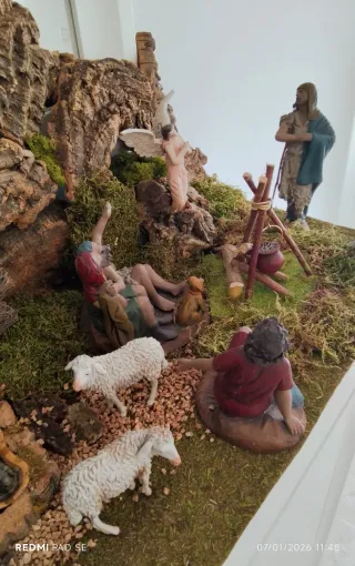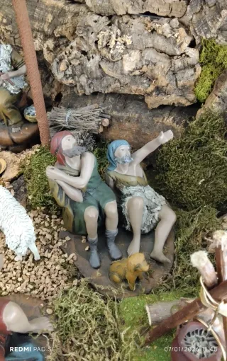 Conjunto de figuras para belén de la marca Ortigas. Representan la escena de la Anunciación compuesta de 8 piezas. Pastor que está de pie 17cm, los pastores sentados 12cm y las dos ovejas de 7cm. Muy bien conservadas (nuevas). - Figuras de belén. - Marca: Ortigas, estilo Hebreo Serie 705 originales. - Incluye ovejas, ángel y pastores. - Más en mí perfil.