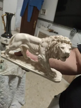 Figura decorativa de cerámica con forma de león. - Diseño detallado. - Material: Cerámica.