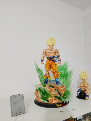 Figura de resina de Goku en pose de batalla. Detallada y con efectos de energía.Figure Class , caja de arte y caja marrón - Material: Resina. - Personaje: Goku. - Diseño: Clase.