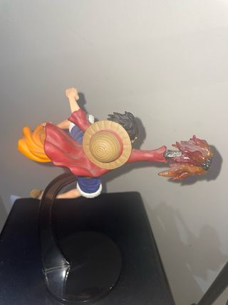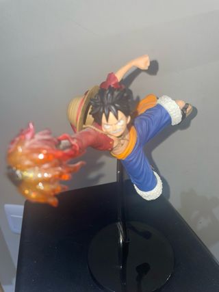 Figura de acción del personaje Luffy de One Piece, con un diseño dinámico y detalles llamativos. - Representa a Luffy en plena acción. - Incluye efectos de fuego. - Base de soporte para exhibición.