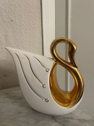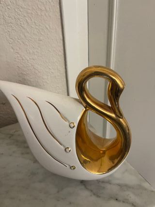 Elegante figura decorativa con forma de cisne. - Color blanco con detalles en dorado. - Diseño moderno y estilizado.