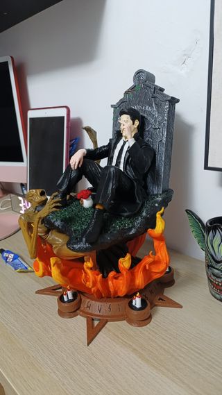 Figura impresa en resina de alta calidad y pintada con aerógrafo y pincel. Mide 40 cm de alto, 20 cm de ancho y 20 cm de fondo. Incluye sistema de luces con diferentes colores. La batería es recargable. Tiene control táctil para manejar las luces y requiere cable tipo C Se realiza por encargo