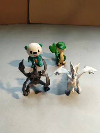 Conjunto de figuras de Pokémon. - Figuras de Oshawott, Snivy, Zekrom y Reshiram.