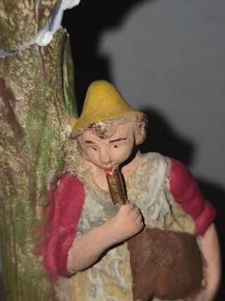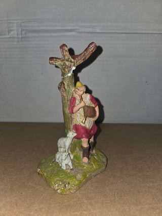 Figura antigua de un pastor con gaita, ideal para belenes o pesebres. - Detallada figura artesanal. - Base de madera.