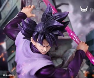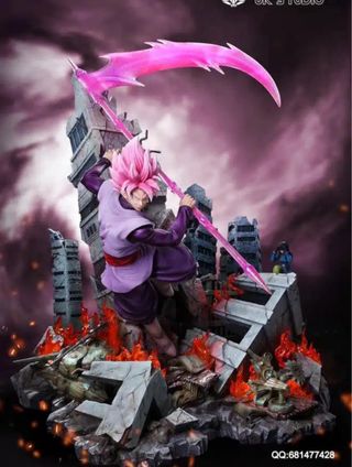 Figura de colección de Goku Black, edición UK Studio. Representa una escena dinámica con detalles de destrucción y energía. - Diseño inspirado en el personaje. - Base detallada con efectos de fuego y ruinas. - Incluye arma característica del personaje.