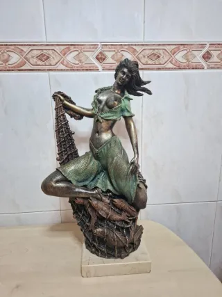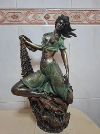 Figura decorativa de una mujer con una red. - Diseño detallado. - Acabado metálico con toques verdes.no hago envío porque pesa mucho..