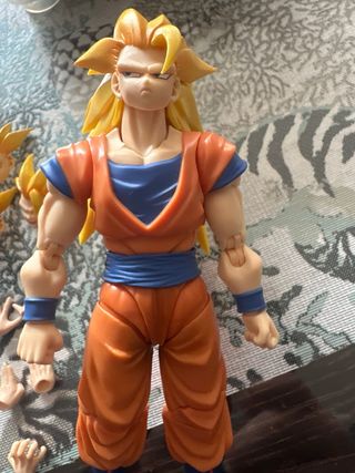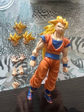 Figura de acción de Goku en su transformación Super Saiyan 3. Se incluye solo los accesorios de la foto - Incluye múltiples rostros intercambiables. - Varias manos intercambiables para diferentes poses. - Detalles fieles al personaje.