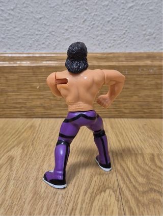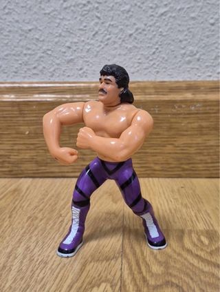 Figura de acción del luchador Ravishing Rick Rude de la WWF. - Detalle de traje morado con rayas negras. - Botas blancas con detalles morados.