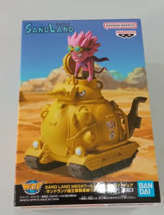 Figura de la colección Sandland Mega World de Banpresto, con el personaje principal y su tanque. - Personaje: Sand Land - Fabricante: Banpresto - Serie: Sand Land - Incluye tanque - Hecho en China