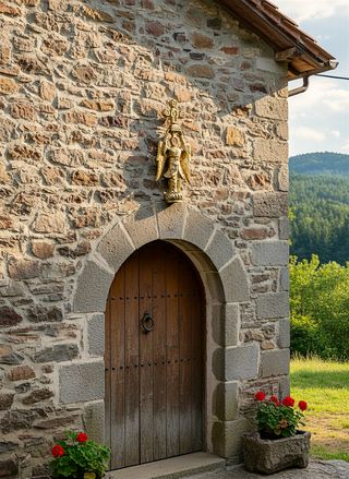 Figura decorativa de San Miguel de Aralar para acoplar en la pared. Máximo protector de Navarra, cuya devoción nace en el santuario de la sierra de Aralar, porta una cruz sobre su cabeza (que custodia el Lignum Crucis) y en actitud de paz y acogida, convirtiéndose en un símbolo de bendición para campos y hogares. Colocarla en el hogar actúa como un centinela espiritual, marcando la entrada de la casa como un lugar seguro y bajo la custodia del ángel. - Material: Bronce macizo. - Diseño detallado. - Mide 43x18cm. ESCULTURA ARCANGEL DE BRONCE CON CRUZ DECORACION RELIGIOSA