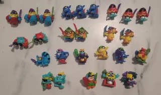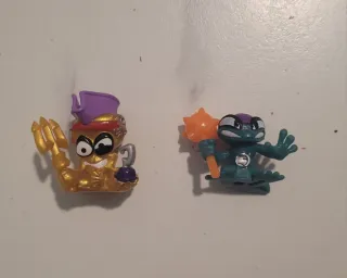 Figuras de la colección Piratix, serie 4. Incluye dos personajes. - Figura dorada con tridente y garfio. 2 euros. - Figura verde con maza, cambia de color. 2 euros. -Resto de piratix 1 euro. Cambio por otros o vendo.