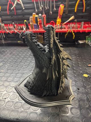 Figura decorativa de cabeza de dragón impresa en 3D. Un diseño detallado y llamativo. - Impresión 3D de alta calidad. - Base incluida para exhibición. Imprimacion echada