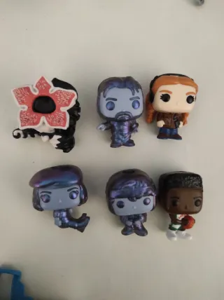 Will normal: 25euros uno, los dos 40 euros. Se puede negociar los precios en función de cuántos funkos compres.Colección de figuras de Stranger Things, provenientes de Kinder Joy. Cada figura representa un personaje icónico de la serie. - Personajes de Stranger Things. - Incluye figuras de Demogorgon. - Ideal para coleccionistas.