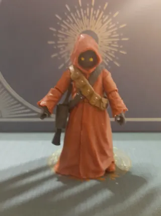 Figura coleccionable de Jawa de Star Wars. 3,75 pulgadas 9,5cm - Detalle de túnica naranja. - Cinturón de munición. - Incluye rifle.