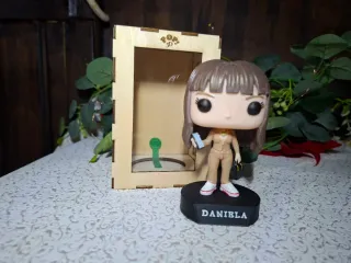 Figura estilo Funko Pop de personas o animales. Impresa en 3d y pintada a mano. - Caja expositora de madera cortada a láser. Las figuras miden sobre los 100-110 mm.
