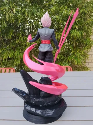 Figura de colección de Goku Black Rosado, personaje de Dragon Ball. - En filamento PLA. - Figura con base rocosa negra. - Aura y efectos de energía en color rosa. - Pintada a mano Medidas 43*26*23