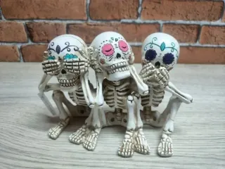 ¡Restaurado, tenía una pierna rota se ve en la última foto! Nemesis Now Three Wise Calaveras - Figura de Esqueleto de 20,3 cm, poliresina, Color Blanco, Talla única Esta figura retrata a Confucio "no ve el mal, no escucha el mal y no habla analectos malvados. Celebra el Día de los Muertos con esta figura macabra cómica. Fundido en la mejor resina. Pintado a mano. 📦 F5
