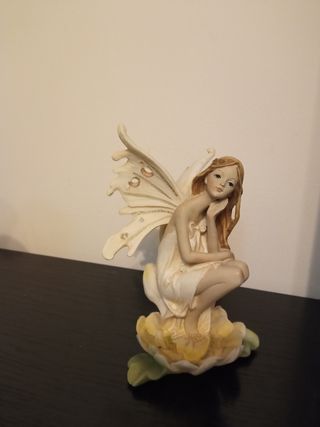 Preciosa figura decorativa de un hada sentada sobre una flor. Mide 13,5 cm