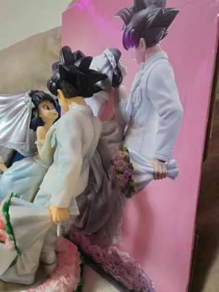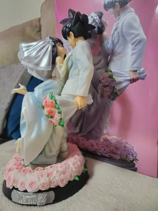 Figura de colección de Goku y Milk vestidos de boda. - Detalle de rosas en la base. - Figuras de resina.